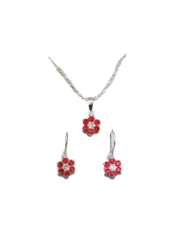 Juegos de Aretes + Gargantilla con dije Flor Roja