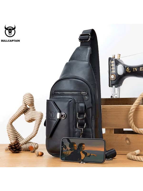 Morral de Cuero Genuino, Marca Bull Captain Modelo XB-013-BK...