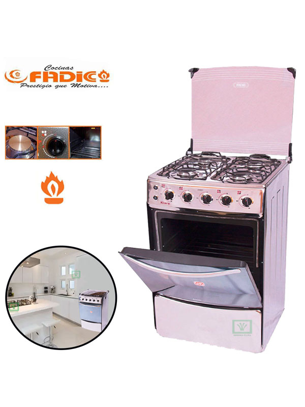 Cocina con Tapa de Vidrio y Horno Kiara 4H Gris