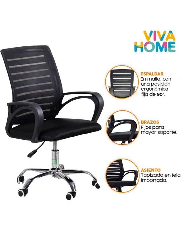 Silla Ergonómica De Oficina VIVA HOME Giratorio 0828 Negro