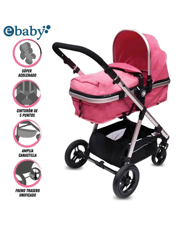 Coche de Paseo «URBAN» con Porta Bebé Pink