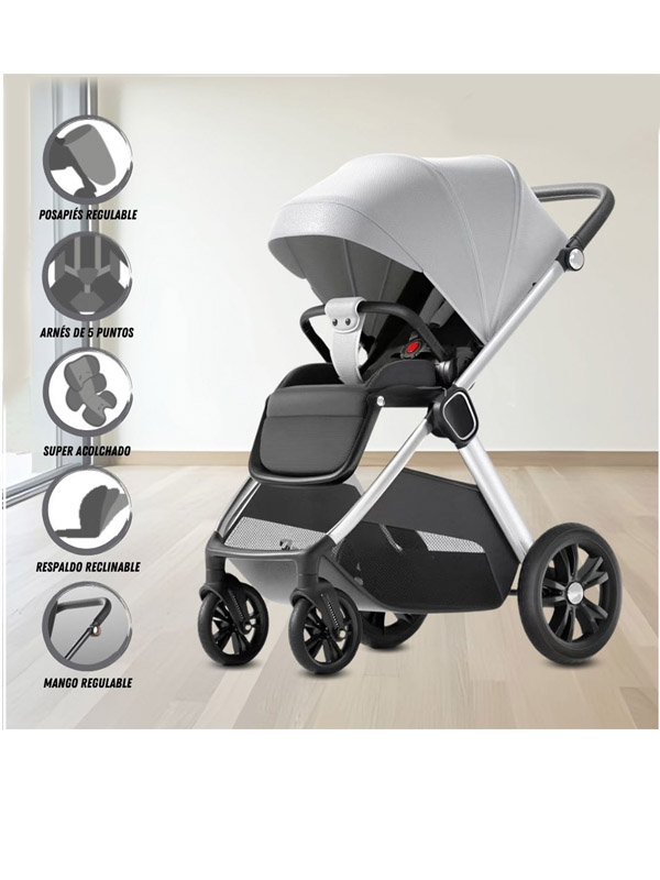 Coche Maleta «TRAVEL HAPPY» con Porta Bebé Gris