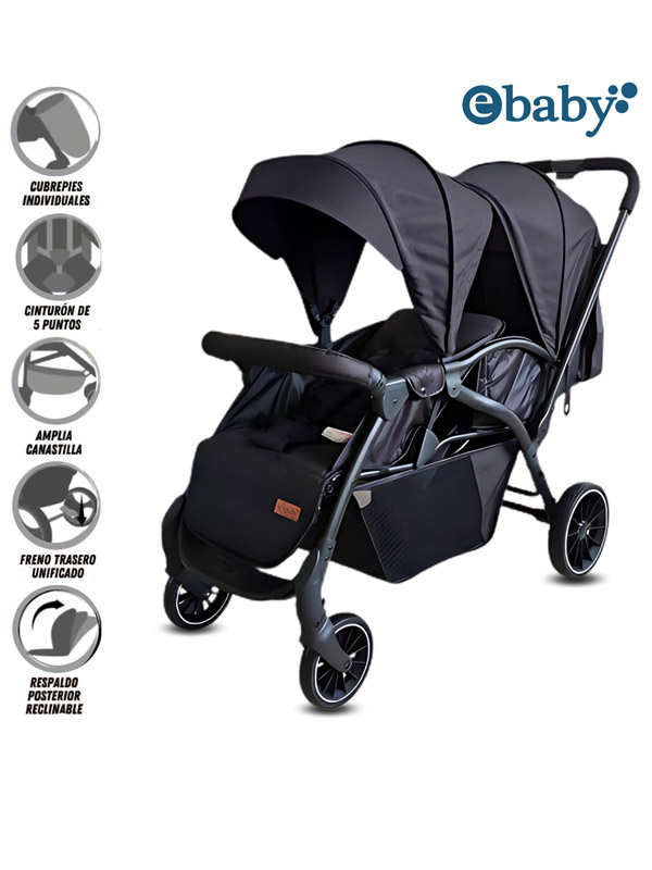 Coche Mellicero «TWIN DOUBLE STROLLER» Black
