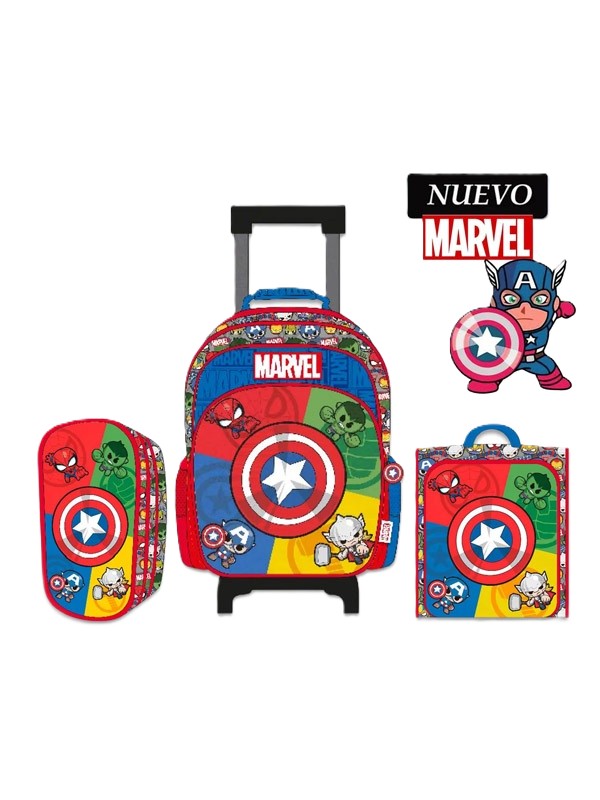 Set de Mochila con Ruedas Lonchera y Cartuchera Marvel A4