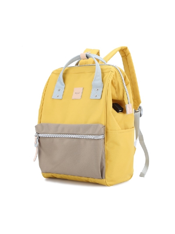 Himawari – Mochila escolar o de viaje multibolsillos porta laptop Conexión USB – Amarillo