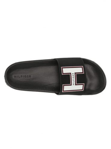 Sandalia slide Tommy Hilfiger azul noche, diseño moderno con logo icónico y comodidad para uso diario. Talla 43 única