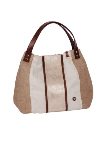 ASAS Y CENTRO DE CUERO, LATERALES DE TELA Y YUTE, ORNAMNETOS IMPORTADOS, FORRO TASLAN, PASAMANERIA EN LOS LATERALES DEL CUERO, BOLSILLO DE TELA EN LA PARTE INTERNA, BROCHES EN LOS LATERALES DEL BOLSO PARA REGULAR EL TAMAÑO.