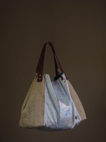 ASAS Y CENTRO DE CUERO, LATERALES DE TELA Y YUTE, ORNAMNETOS IMPORTADOS, FORRO TASLAN, PASAMANERIA EN LOS LATERALES DEL CUERO, BOLSILLO DE TELA EN LA PARTE INTERNA, BROCHES EN LOS LATERALES DEL BOLSO PARA REGULAR EL TAMAÑO.