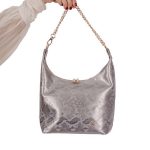 CATERA DE CUERO CON CADENA DORADA, CON CIERRE Y DOS COMPARTIMENTOS PARA CELULAR CON FUNDILLO DE CUERO, FORRO DE CUERO TASLAN.