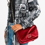Clutch de terciopelo en color granate con detalles en plateado. Trae correa de cadena para usarlo como cartera