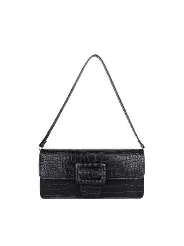 Cartera de mujer, para hombro , color negro , de cuero PU , y cierre de broche , con medidas