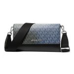 Bolso bandolera Michael Kors con solapa de monograma en degradado azul y base de cuero negro