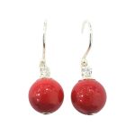 Aretes colgantes bolitas cuarzo rojo plata 950