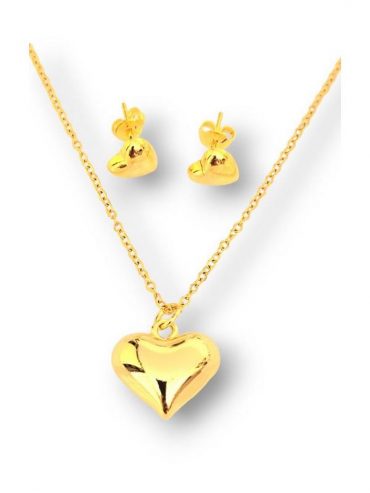 Collar con dije y aretes Corazón de Acero