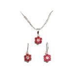 Juegos de Aretes + Gargantilla con dije Flor Roja