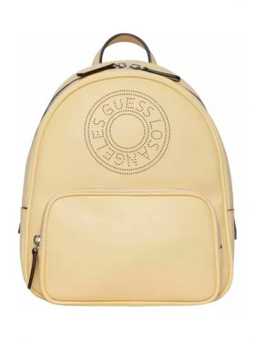 Mochila amarilla con detalle en alto relieve de la marca Guess