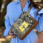 Morral Versátil con Broche Dorado – BASE CAMEL CON TAPA COBRA GRIS CON DORADO