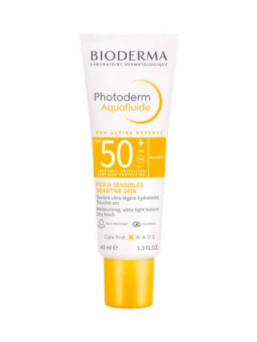 Photoderm Max Aquafluide SPF50 + es un protector solar textura ligera, acabado toque seco anti-brillo UVA / UVB muy alta para el rostro. Para todo tipo de pieles. No comedogénico, sin fragancia, resistente al agua. Ofrece una protección anti-brillo muy alta UVA / UVB. Aplicación agradable y fácil gracias a una textura fluida tan ligera como el agua. Acabado toque seco. Ideal para todo tipo de pieles, incluso mixtas a grasas, pieles sensibles o intolerantes a todo tipo de luz solar, muy piel clara con pecas, piel expuesta a la luz solar máxima. Textura no grasa. Buena tolerancia de la piel.