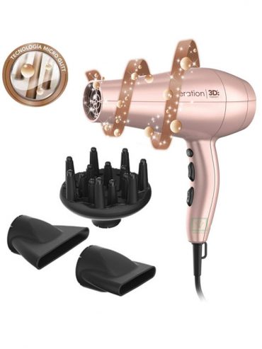 El secador Diva 3D Keration combina la innovadora tecnología Micro Glitt y la tecnología 3D Therapy que brinda brillo, anti frizz y reconstrucción al cabello. La tecnología Micro Glitt presente en esta herramienta, posee una mayor cantidad de partículas lo que brinda un 80% más de protección de la keratina natural del cabello y reduce la pérdida de la misma. Es un secador potente con motor AC profesional lo que lo convierte en una herramienta fiable y duradera. Cuenta con 6 combinaciones de 3 temperaturas y 2 velocidades, además del chorro de aire frío. Como regalo recibirás 2 boquillas de 4 y 8 mm y un difusor. Para potenciar los beneficios de esta tecnología, recomendamos el uso del cepillo Keration Extreme y de la plancha Starlight IHT Keration.