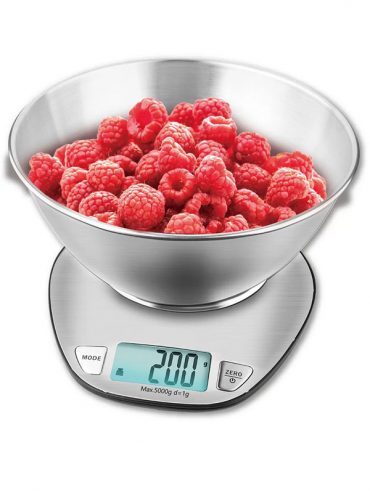 Escala de alimentos con resolución de 1g a 5Kg, fácil de leer.