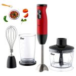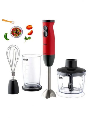 Ideal batidora de inmersión de la reconocida marca Oster con una potente cuchilla Quad para la preparación de tus alimentos, con un motor de 400 watts el cual optimiza la eficiencia en cada proceso ya sea para batir, picar, moler y mezclar como desees la consistencia de tus preparaciones. Posee 1 velocidad más una función turbo logrando una preparación mucho más rápida de una manera mucho más fácil, además que te permite crear una infinidad de preparaciones o recetas favoritas que desees realizar, otro detalle de la batidora es su tamaño tan compacto para un cómodo almacenaje y así no ocupa demasiado espacio siendo muy practico para tu cocina. Su cuchilla Quadblade de 4 aspas logra un mezclado rápido y uniforme para preparar preparar purés, papillas para bebé, sopas, jugos y otras recetas. Incluye accesorios como un vaso medidor de 500 ml para batir jugos, batidos y aderezos, pica todo de 500 ml para picar y moler con comodidad cebollas, ajos, nueces y mucho más, y batidor para batir claras, crema chantillí y mucho más.