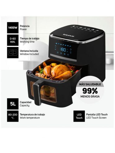 Cuenta con Pantalla Led, temperatura de 80 -220 °C, una ventana para que puedas ver como va la cocción de tus alimentos.