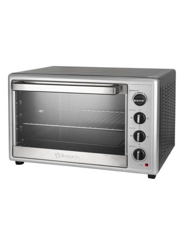 Horno rosticero de 88 litros de capacidad, sistema de convección, timer hasta 120 minutos y apagado automático, interior con recubrimiento antiadherente, incluye canastilla, atrapa carnes y varilla rosticera, control de temperatura hasta 250°, 2200 watts.