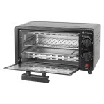 Horno tostador de 9 litros de capacidad, timer hasta 60 minutos y apagado automático, resistencia superior e inferior, control temperatura hasta 250°, 800 watts.