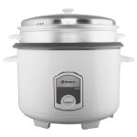 Olla arrocera de 4.2 litros, vaporera exterior con tapa de metal, tazón con recubrimiento antiadherente, rinde 4 kilos arroz, cuerpo de color blanco, 1600 watts.