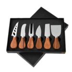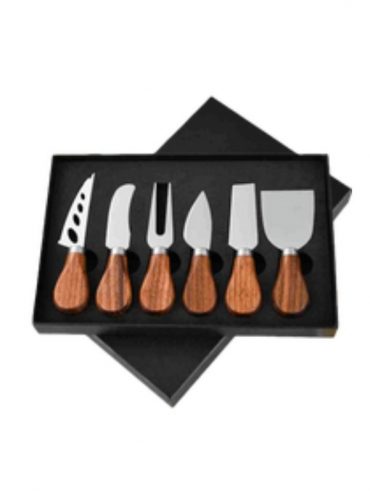 Set de 06 cubiertos para tabla de quesos o eventos sociales, cubiertos con mango de madera acacia. Elegantes y estéticos.