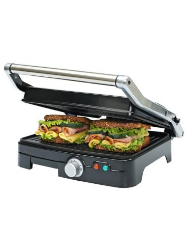 Grill panini, sistema bisagra 180°, placas ranuradas con antiadherente para preparar sándwiches, carnes, embutidos, etc. 1800w
