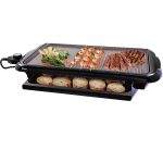 Sistema dual 2 en 1 (parrilla y plancha) que permite preparar una amplia variedad de alimentos al mismo tiempo. Su superficie tiene un recubrimiento de cerámica natural, lo que evita que los alimentos se peguen, y la gaveta térmica mantiene la comida tibia mientras terminas de cocinar.
