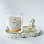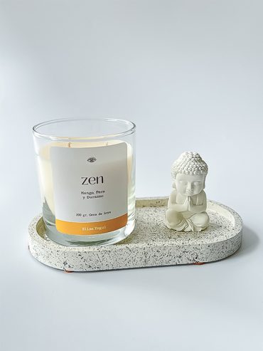 Marca: Bliss Yogui Contiene: Vela aromática DHARMA (Melón, Jazmín y Flor de lirio), Bandeja de concreto (18x 9.5 cm) y Porta foto de concreto (5×5 cm). *No incluye foto.