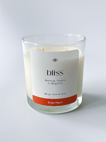 Marca: Bliss Yogui Aroma: Naranja, Canela y Jengibre Contenido: 200 gr. Descripción: Vela aromática 100 % cera de soya, 2 mechas de algodón, esencias libres de toxinas, en envase de vidrio. Duración aprox: 40 horas.