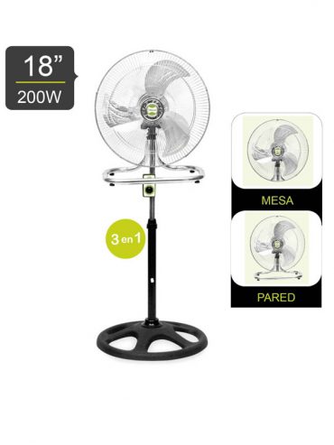 Ventilador Bossko 3 en 1 De 18″ 200 Watts Modelo BK-8218VI – Plateado. El calor puede llegar a ser bastante fastidioso en el verano. En muchos de los casos es indispensable contar en el hogar o en el centro laboral con un ventilador. La prestigiosa marca Bossko pone a tu alcance este útil y práctico producto, el ventilador 3 en 1 cumple con los requerimientos de la más alta calidad.