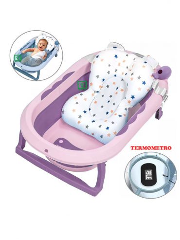 Esta bañera esta equipada para todas las necesidades de los padres a la hora del baño, con el termometro para regular la temperatura y buscar la temperatura ideal. Cuenta con un cojin que ayuda cuando el bebe aun es pequeño de 0 a 12 meses, el cual es de gran ayuda para los padres y el bebé este mas comodo, es desmontable para cuando el bebé va creciendo.
