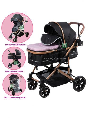 Coche Moises para Bebe Bigi con Mango Reversible Rosado