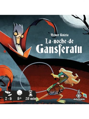 La Noche de Gansferatu es un juego de mesa de estrategia y misterio donde los jugadores exploran el castillo de Cuacvania en busca de aldeanos perdidos y tesoros ocultos. Cada turno es una decisión crucial: avanzar con cautela, recordar las cartas reveladas y arriesgarse a descubrir nuevas recompensas o trampas. Con una mecánica que combina memoria y toma de riesgos, este juego es ideal para familias y grupos de amigos que buscan una experiencia divertida y emocionante.