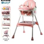 Silla de Comer Ebaby Plegable Doble Bandeja LULU Rosado
