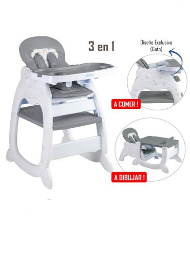 Silla de Comer Gato 3 en 1 Gris