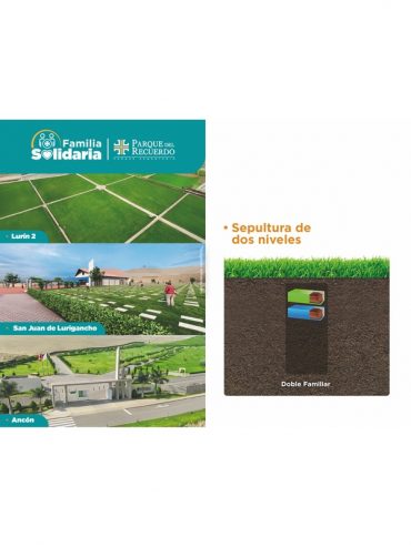 Sepultura de dos niveles, puede inscribir hasta 4 beneficiarios, Incluye dos servicios de sepelio, Carencia: 90 días / Penalidad: S/300, Inscripción o cambio de beneficiario: S/100.