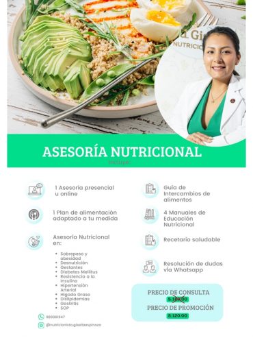 1 sesión nutricional presencial o virtual