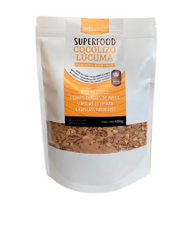 Ingredientes: Granos enteros de avena, semillas de linaza, lúcuma en polvo, coco rallado y especias naturales.