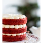 Red velvet con un toque de pisco, relleno con arandanos y frosting de queso crema . Aprox 8 porciones