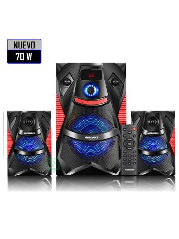 La marca Micronics, líder en sistema de audio, tiene para usted una diversidad de modelos con los cuales podrá disfrutar de su música favorita. Diseñados con los mejores estándares de calidad con el cuales la empresa logro en los últimos años un posicionamiento y reconocimiento como una alternativa ante los equipos de audio de marcas reconocidas. Micronics tiene toda la tecnología para acompañar perfectamente a tus dispositivos preferidos: como computadoras, laptops, celulares, tablets y más. Sácale el máximo provecho a tu tecnología con estos accesorios de última generación.Los sistemas de audio Micronics tienen lo básico e importante para disfrutas de la música como es entrada memoria USB/SD, resistentes a los rasguños y al polvo a diferencia de los discos compactos, y tienen una gran capacidad de almacenamiento ideal para tu música preferida.Vive una experiencia increíble de sonido con este parlante 2.1 de la marca Micronics . Gracias a su potente Watts RMS de potencia te permitirá escuchar tus canciones favoritas con una excelente calidad. incluso puedes mejorar el sonido que emite por medio del control de bajos. Además, cuenta con el apoyo de un woofer de 5 pulgadas. Su conexión inalámbrica es cómoda y de fácil uso con un alcance de 10 metros.